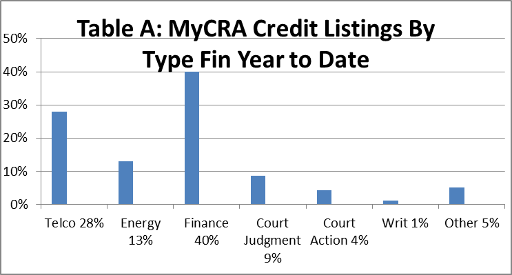 Table A MyCRA Credit Listings By Type Fin Year to Date