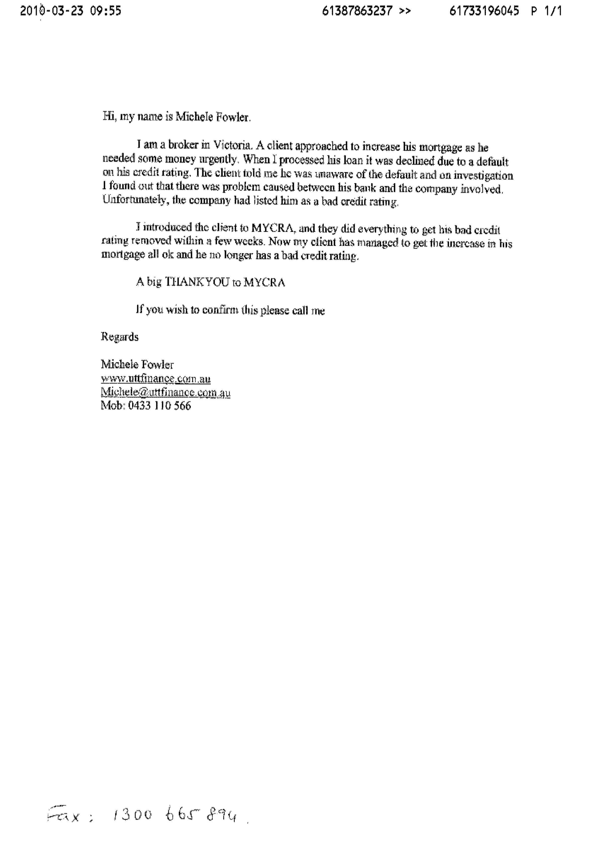 A Mortgage Broker in Melbourne that reccommended our services to one of her clients...